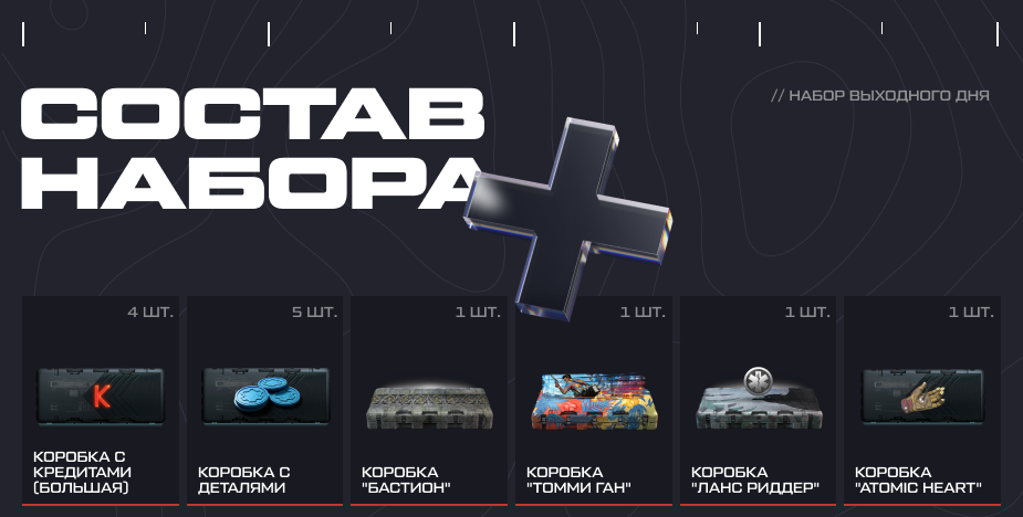 Воспользуйтесь отличным предложением! С 12:00 мск 6 февраля вы можете приобрести "Набор выходного дня" с кредитами, деталями и коробками удачи. Цена набора — 150 рублей. Воспользоваться предложением можно до 23:59 мск 12 февраля на странице пополнения счета (вкладка "Наборы").