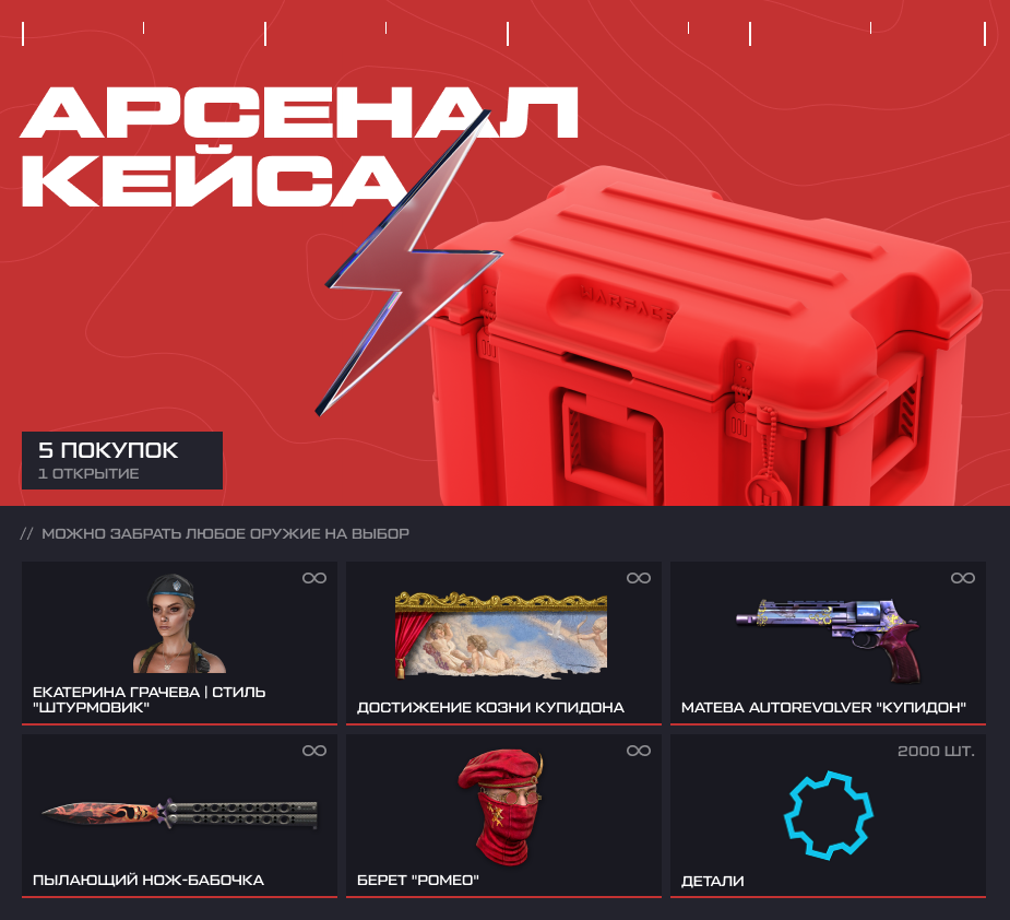 Если количество купленных ежедневных наборов достигнет 10 экземпляров — вы также сможете открыть кейс с агентами и оружием навсегда и забрать любую награду из предложенных по своему выбору. Нажмите на изображение ниже, чтобы увидеть полный список предметов в кейсе.