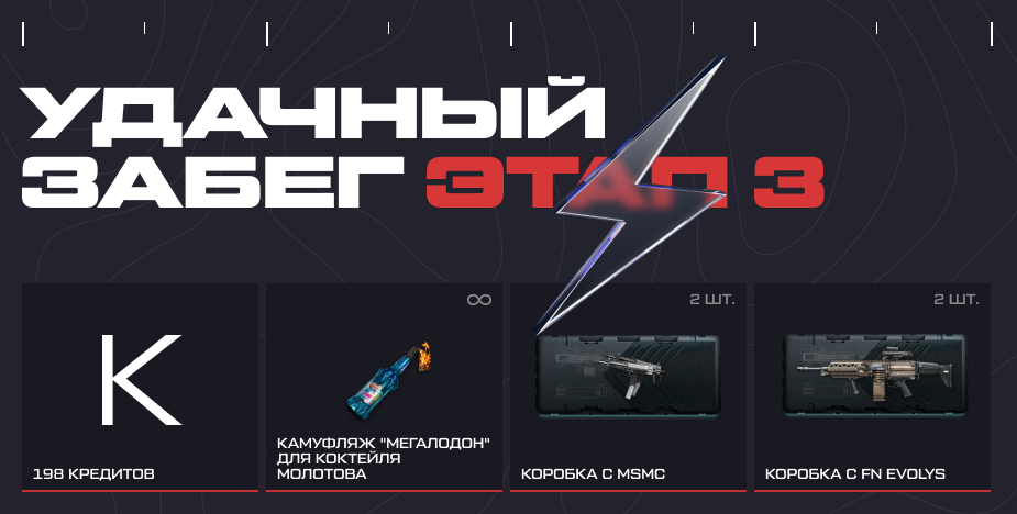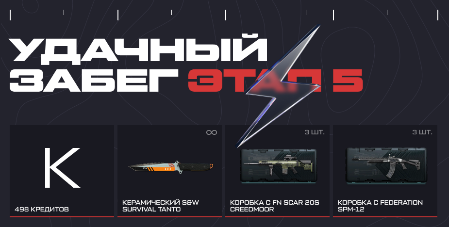 Расширьте свой арсенал с новой акцией! Часть наград достанется вам бесплатно, а среди платных призов вас ждут кредиты, коробки удачи и Керамический S&W Survival Tanto. Акция продлится с 12:00 мск 10 февраля по 23:59 мск 12 февраля.
