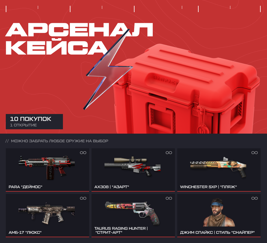 Если количество купленных ежедневных наборов достигнет 10 экземпляров — вы также сможете открыть кейс с агентами и оружием навсегда и забрать любую награду из предложенных по своему выбору. Нажмите на изображение ниже, чтобы увидеть полный список предметов в кейсе.