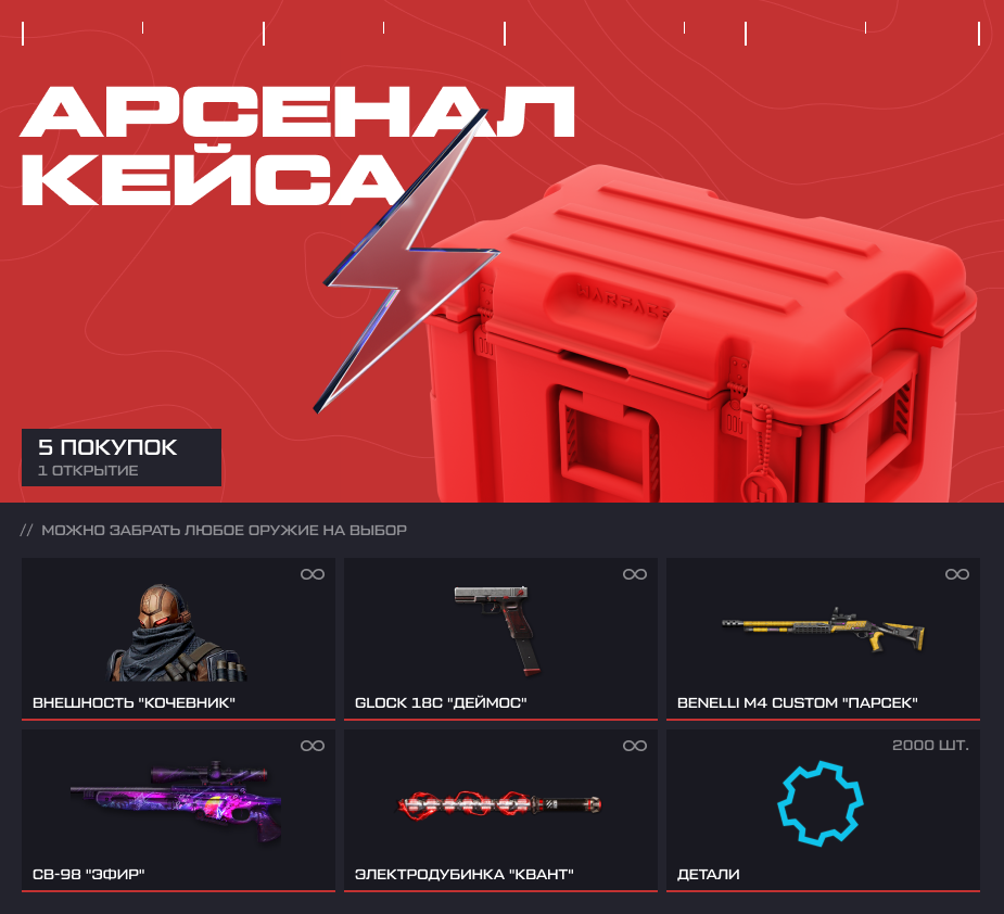 Пополните арсенал с выгодой! Набор доступен по цене в 50 рублей, в его составе 200 кредитов, временный доступ к сервису Warface Плюс, детали и коробки с опытом. Предложение доступно пользователям, которые создали аккаунт до 31.12.25 и не совершали покупки с 01.01.26 по 24.03.26.